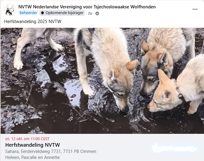 12 okltober 2025 gaan wij weer wandelen met de wolfhonden, dit keer in Ommen.